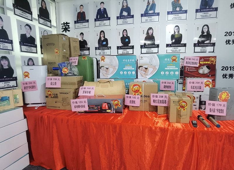 在大会上,我们按照激励方案进行了抽奖活动,丰厚的奖品涵盖了家用电器、日常用品以及大额红包等多个类型。